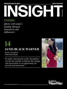 SPRING 2024 14 JANIS BLACK WARNER Owner, President PillowTalk Studio “ In today’s fast-paced world, disruptions are the new normal; I embrace this change and uncertainty as an opportunity for growth and innovation.” www.marquiswhoswho.com INSIGHT MARQUIS WHO′S WHO SIXTH EDITION INSIDE: Q&As with today’s leading Marquis luminaries and influencers SPRING 2024